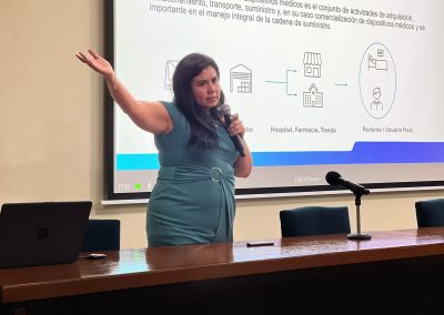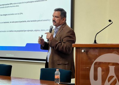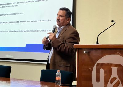 El taller fue impartido por el Mtro. Agustín Carrillo, la Mtra. Verónica Hernández Santamaría y la Mtra. Janet Judith Mendoza, quienes abordaron temas clave para la industria de dispositivos médicos, incluyendo los principios fundamentales de la gestión de riesgos, su marco normativo y los requisitos regulatorios que exige la nueva NOM-241-SSA1-2025 en alineación con la norma internacional ISO 13485.