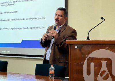 Durante la jornada, se expusieron los orígenes de la gestión de riesgos, los antecedentes de la norma ISO 14971, el papel del fabricante, así como el concepto de probabilidad, consecuencias del daño y la identificación de partes interesadas. También se subrayó el objeto y alcance de la ISO 14971, dejando en claro que esta norma busca ayudar a los fabricantes a identificar, estimar, evaluar y controlar riesgos asociados a los dispositivos médicos, incluyendo software y productos para diagnóstico in vitro.